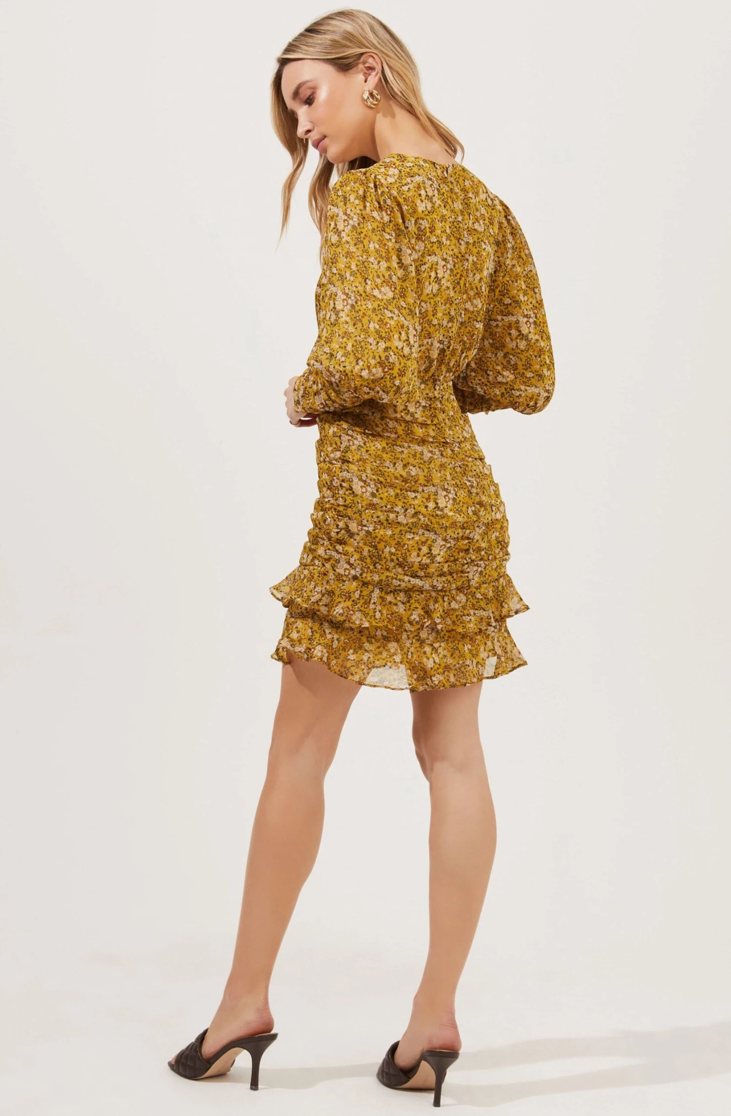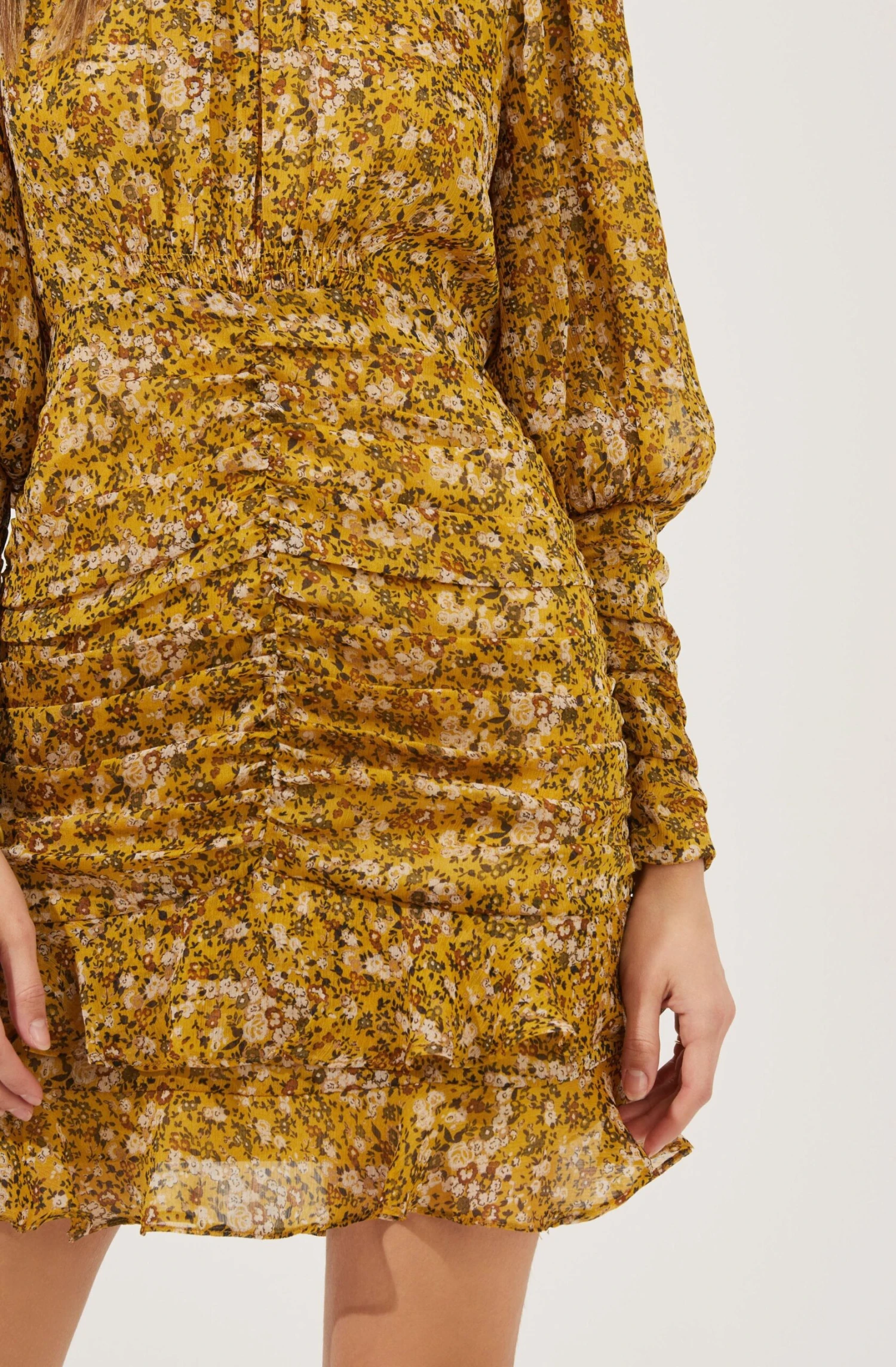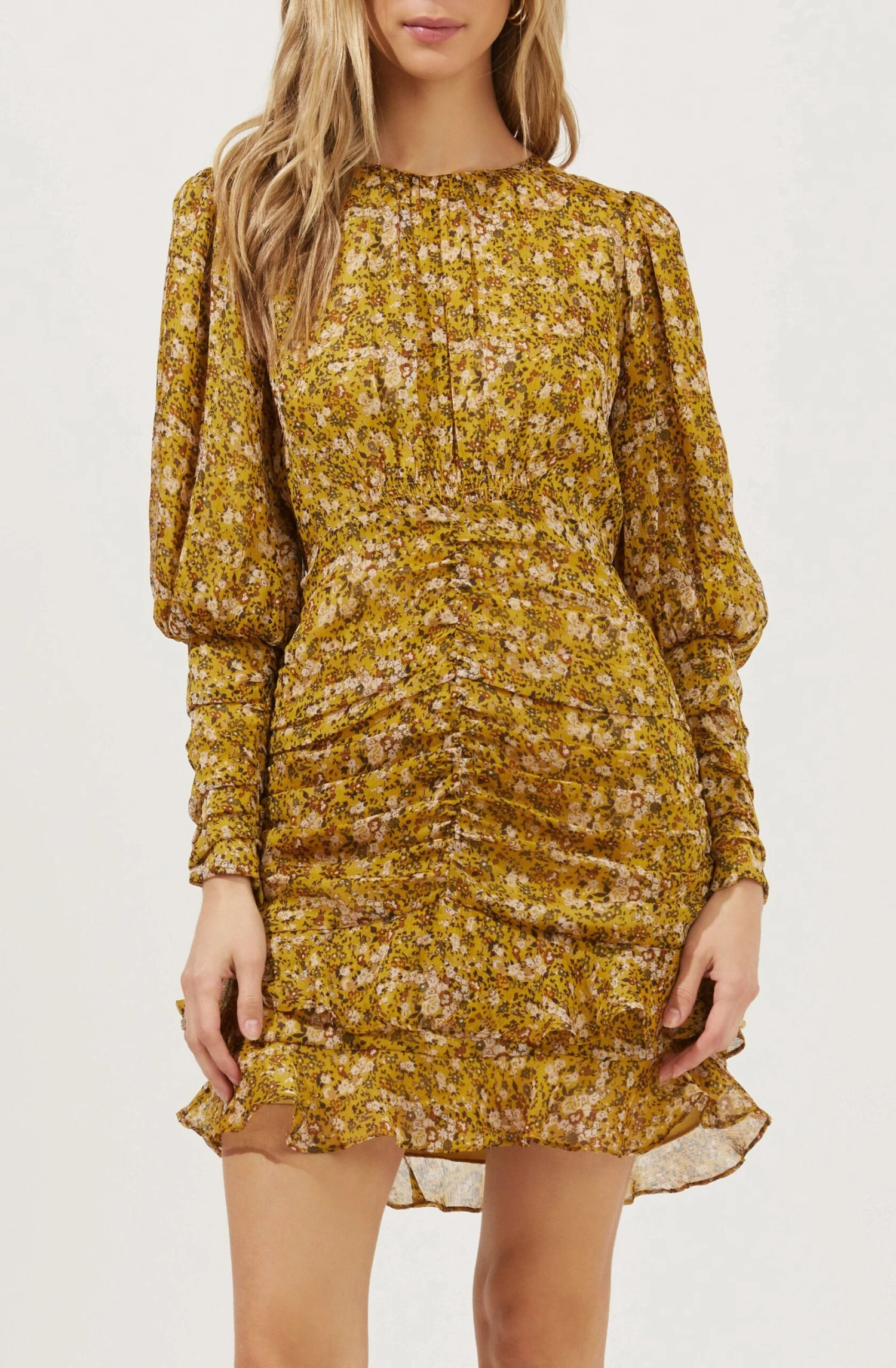 Claremore Floral Ruched Long Sleeve Mini Dress
