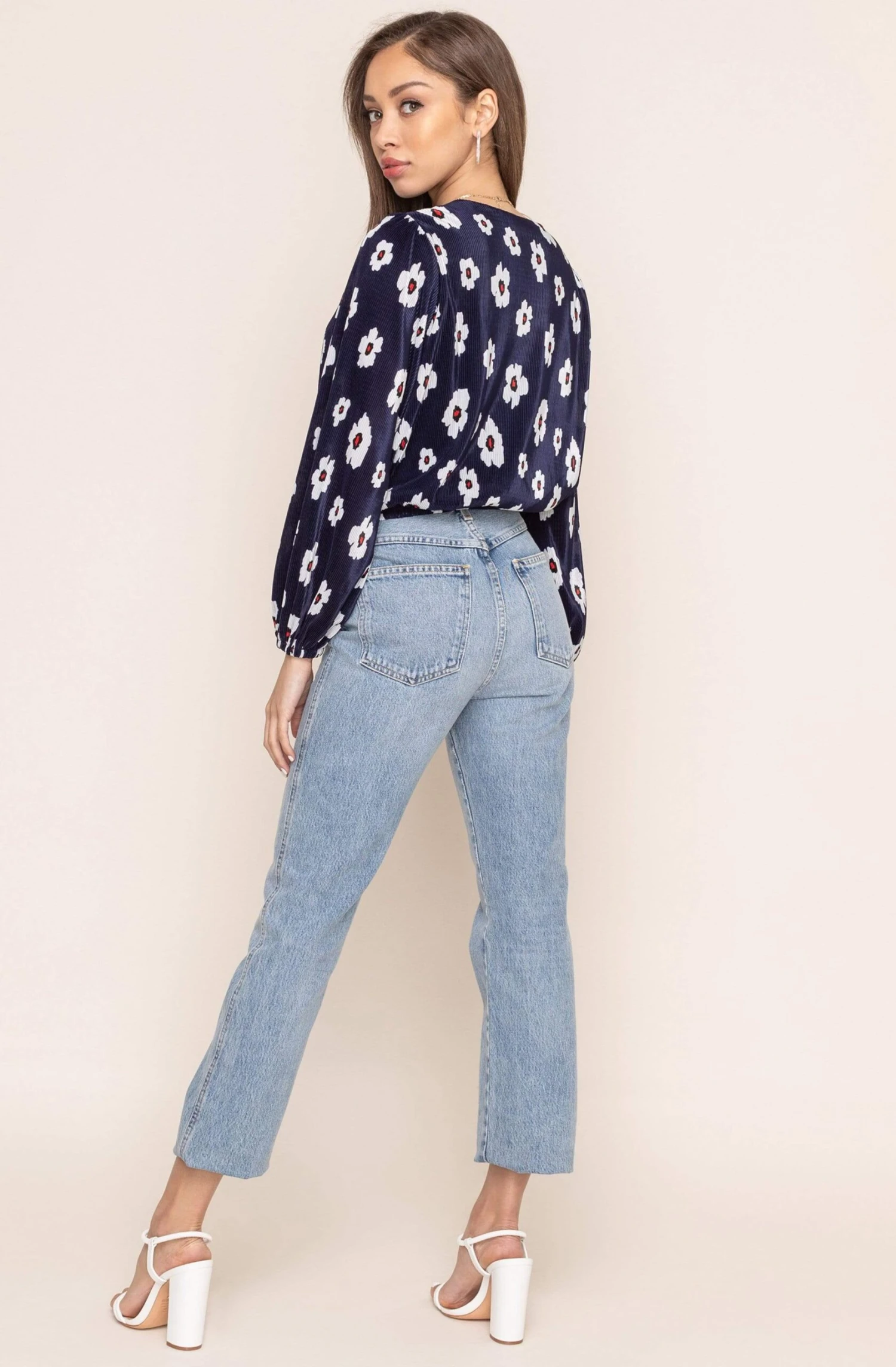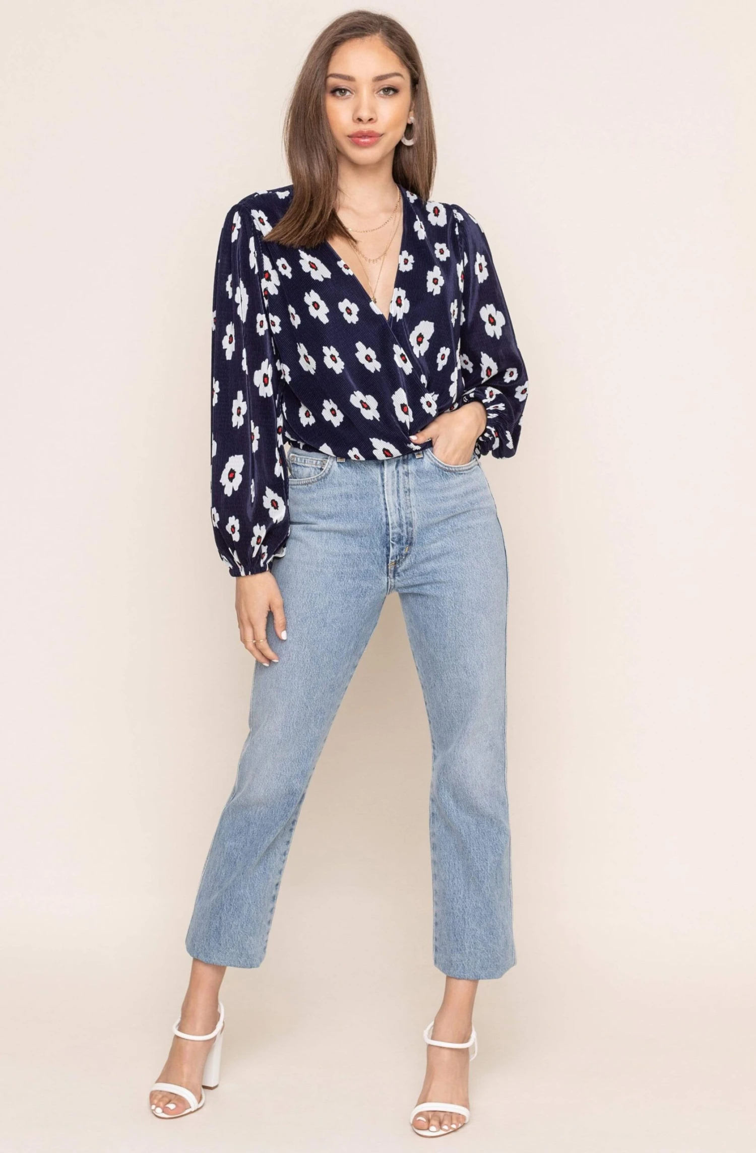100% Polyester, Lining: 100% Polyester (Size M), Length: 19 1/2″, Pull On, Dry Clean Only, Floral Blouse, Long Sleeve, Surplice, Model is Wearing Size S, Model’s Measurements: Height 5’9″ // Bust 32″ // Waist 24″ // Hips 34.5″, Fits True to Size, Style#AT15081B