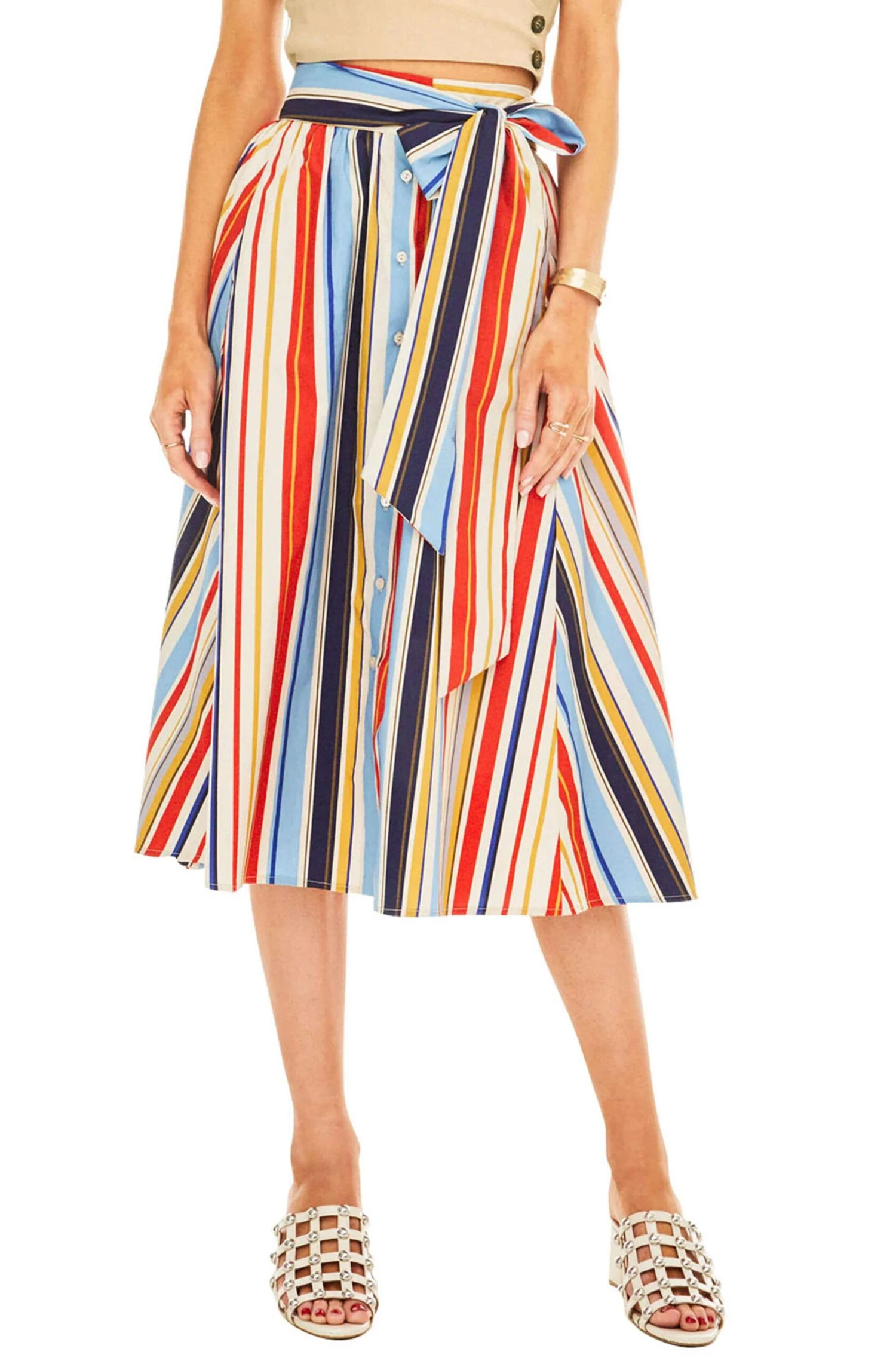 100% Cotton, Length: 27 3/4″ (Size M), Dry Clean Only, Midi Button Up Skirt, Tie Waist, Model is Wearing Size S, Model’s Measurements: Height 5’10” // Bust 31″ // Waist 24″ // Hips 33.5″, Fits True to Size, Style#ACS8079