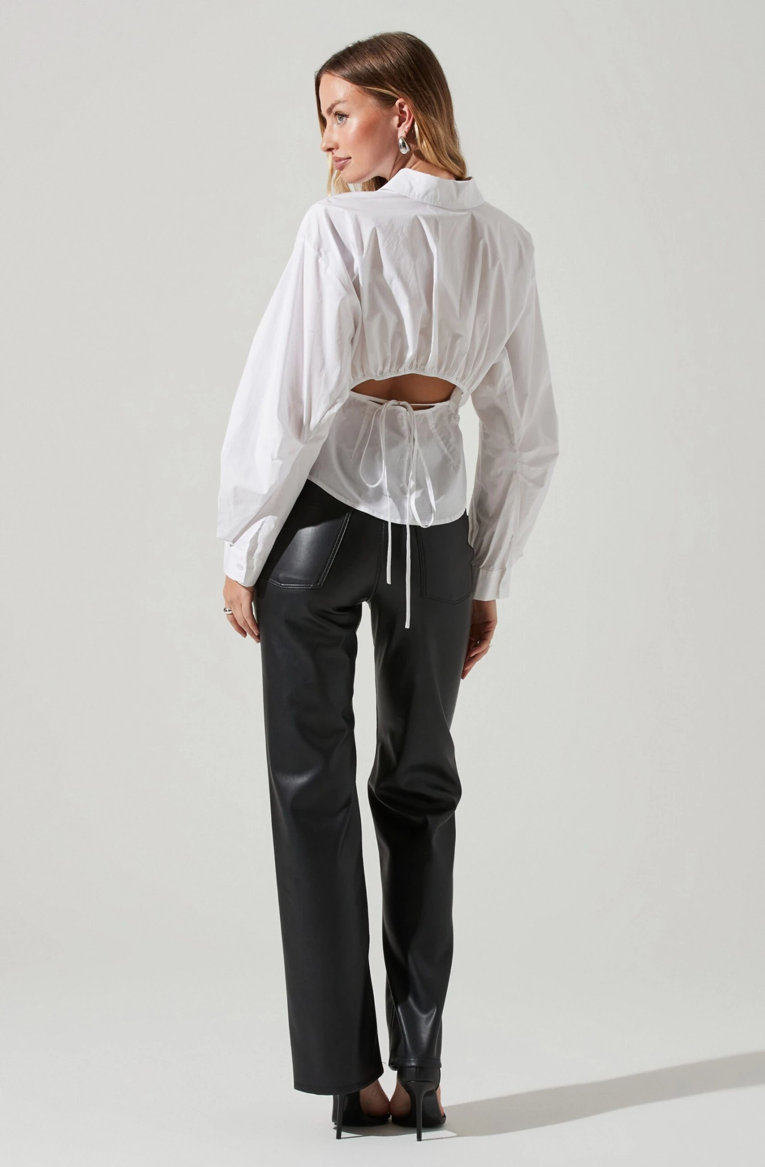 Timeless, tailored style with a twist: Cutout and tie details on back refresh our Sienna Top. Equally chic with a blazer and trousers at the office, or with sleek pants or a skirt for your next night out.